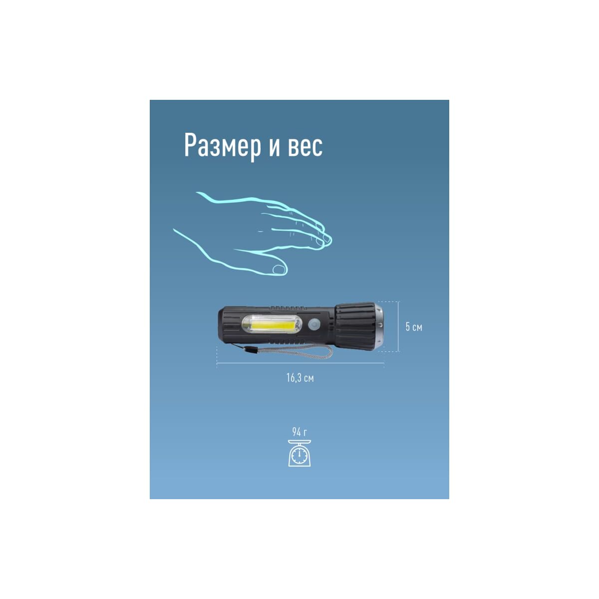 Технические характеристики КОСМОС KOS114Lit 1Вт LED+2Вт COB, коллиматорная линза, Li-ion 18650 1000mAh, ABS-пластик, USB шнур