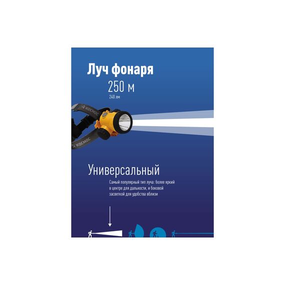 Фонарь налобный аккумуляторный КОСМОС KOCH3WLi-On