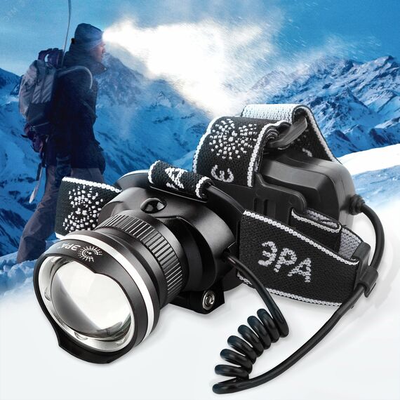 Налобный фонарь ЭРА GA806 аккумуляторный, регулируемый фокус, 5 Вт, CREE Б0039626 с емким литиевым аккумулятором 2,5 мАч, яркими экономичными светодиодами CREE и регулируемым фокусом.