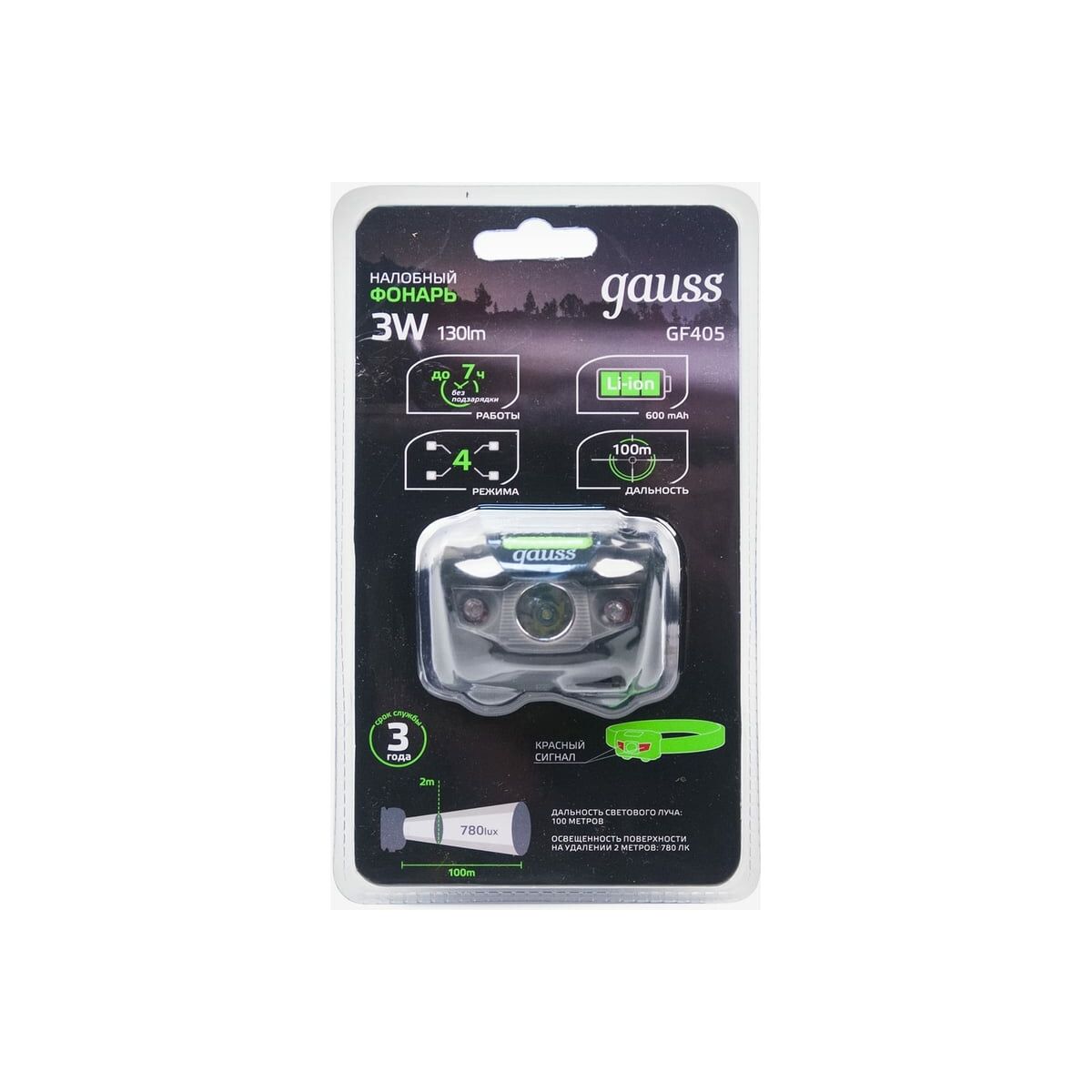 Фонарь налобный Gauss модель GFL405 3W 130lm Li-ion 600mAh LED - это многофункциональный фонарь с красным сигналом тревоги. Этот надежный и практичный фонарь станет незаменимым помощником в любых условиях.