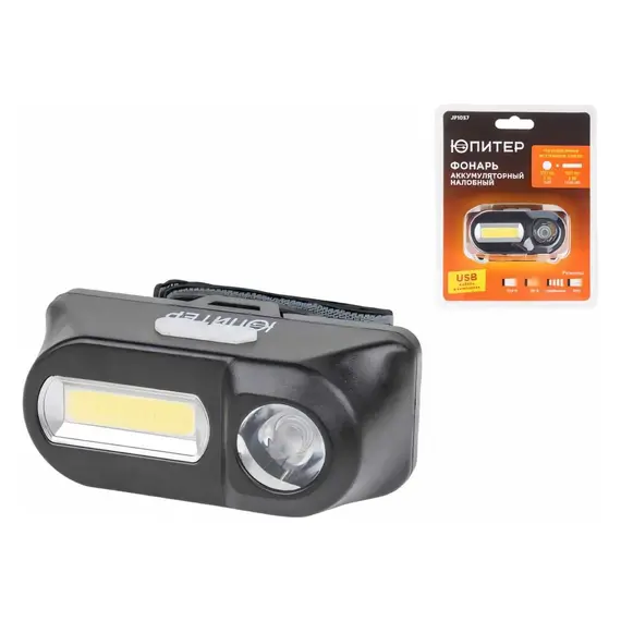 Фонарь налобный ЮПИТЕР JP1057, встроенный акк + USB ЗУ