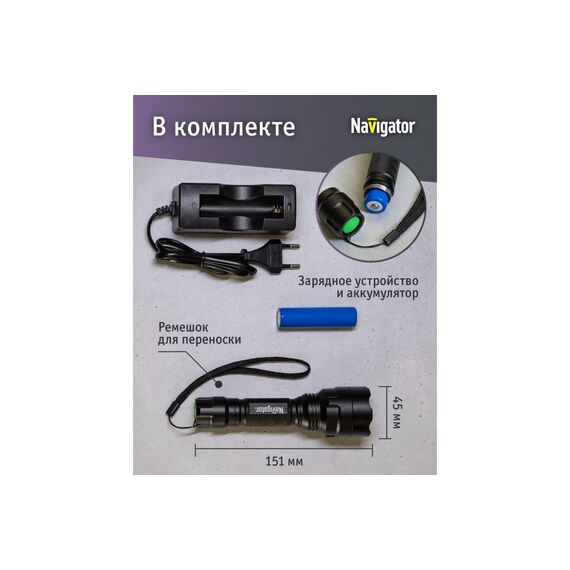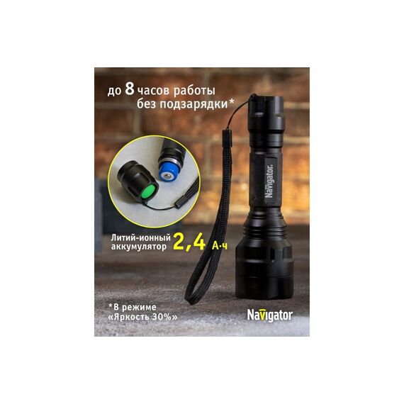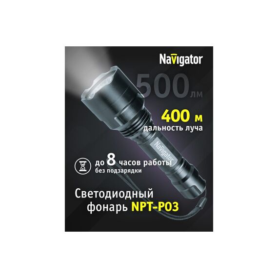 Преимущества Navigator NPT-P03-18650 алюминий, 1 CREE LEDx10Вт, аккумулятор 3.7В, 2А 71583