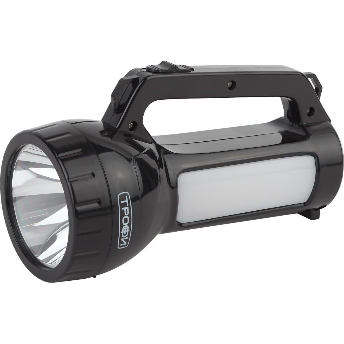 Аккумуляторный светодиодный фонарь прожектор Трофи PA504 1Вт боковой светильник 24 SMD Б0042439 - ручной аккумуляторный фонарь с боковым светильником. Во фронтальной части установлен мощный SMD-диод с дальним направленным светом, светильник состоит из 12 светодиодов с заливающим ближним светом. Для работы фонаря не требуются батарейки, одной подзарядки устройства хватает на 4 часа непрерывной работы. Эргономичная ручка, кнопка включения прямо под большим пальцем. С помощью этого простого в управлении фонаря можно эффективно освещать путь или организовать освещение на привале, поставив Трофи PA-504 на ровную поверхность в качестве настольного светильника.