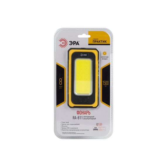 Светодиодный фонарь ЭРА Рабочие Практик RA-811 ручной, аккумуляторный, 15 Вт COB, powerbank, солнечная батарея, магнит, Б0054472 входит в популярную серию ЭРА Практик, созданную специально для представителей рабочих профессий: строителей, монтажников, ремонтников, сантехников, электриков.