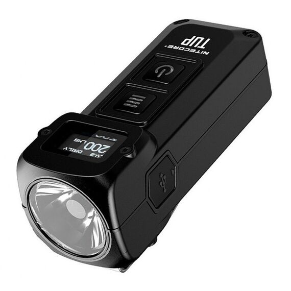 Главной особенностью конструкции Nitecore TUP является его встроенный аккумулятор с емкостью 1200 mAh, который можно зарядить от любого портативного источника питания. Устройство оборудовано micro-USB портом, плотно закрывающимся резиновой заглушкой для защиты от попадания влаги и пыли. Максимальное время работы от одного заряда аккумулятора составляет 70 часов.