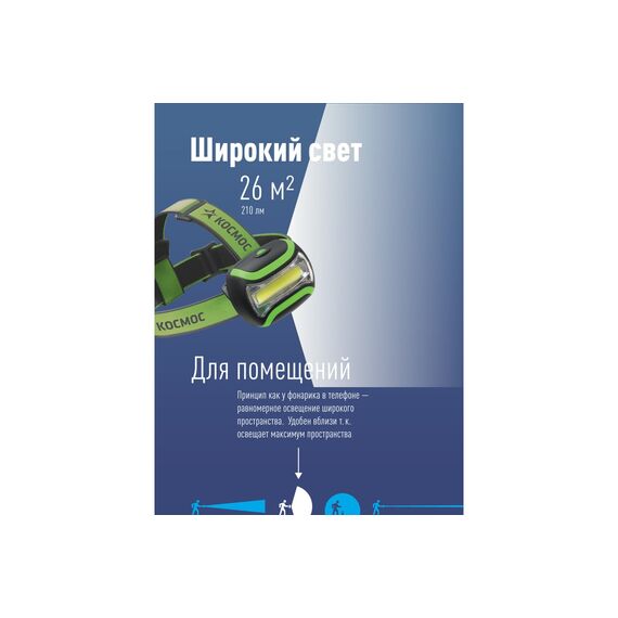 Светодиодный налобный фонарь КОСМОС KOC-H3WCOBLED