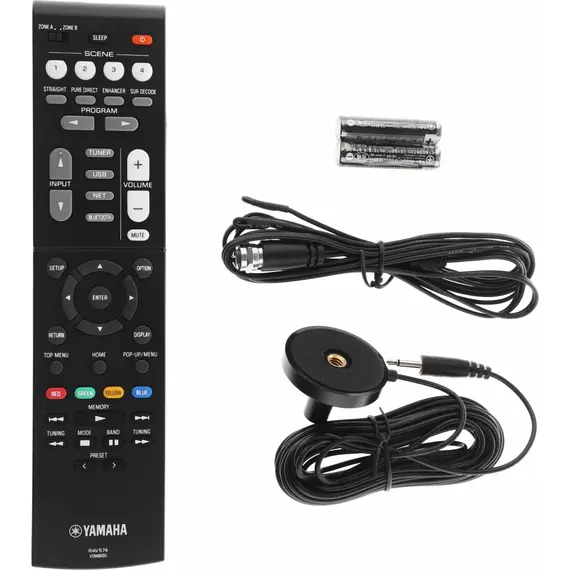Пульт, микрофон YPAO, батарейки, инструкция.