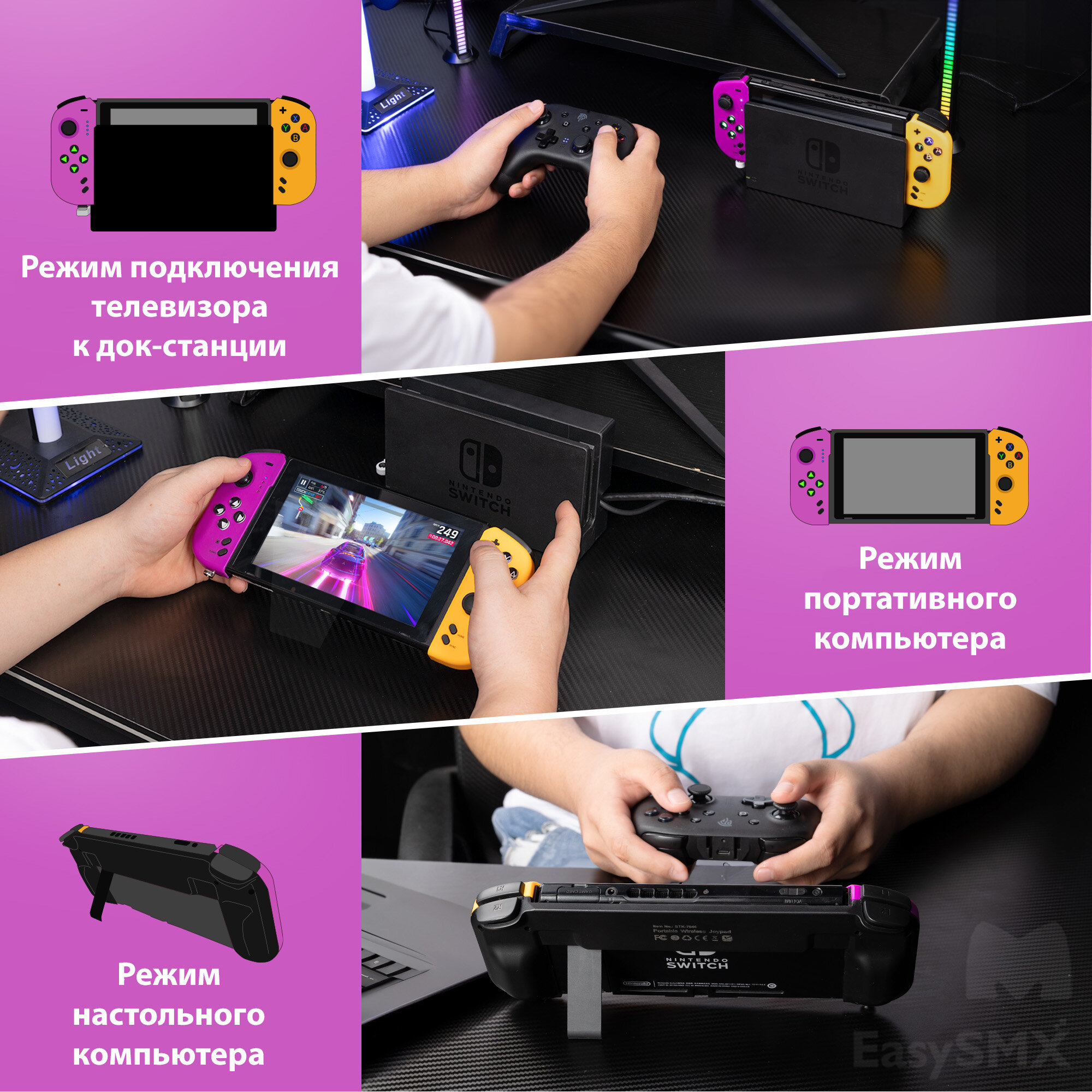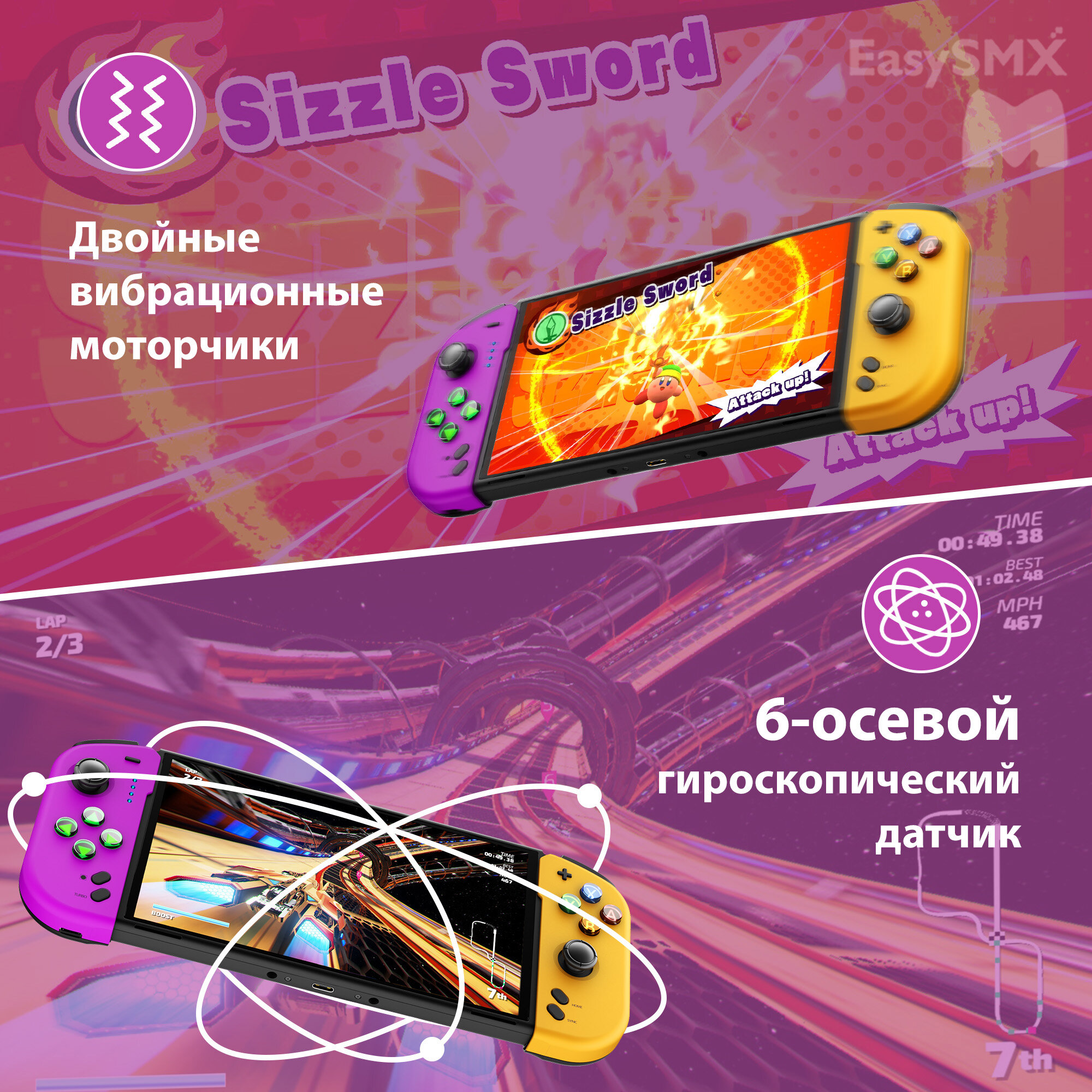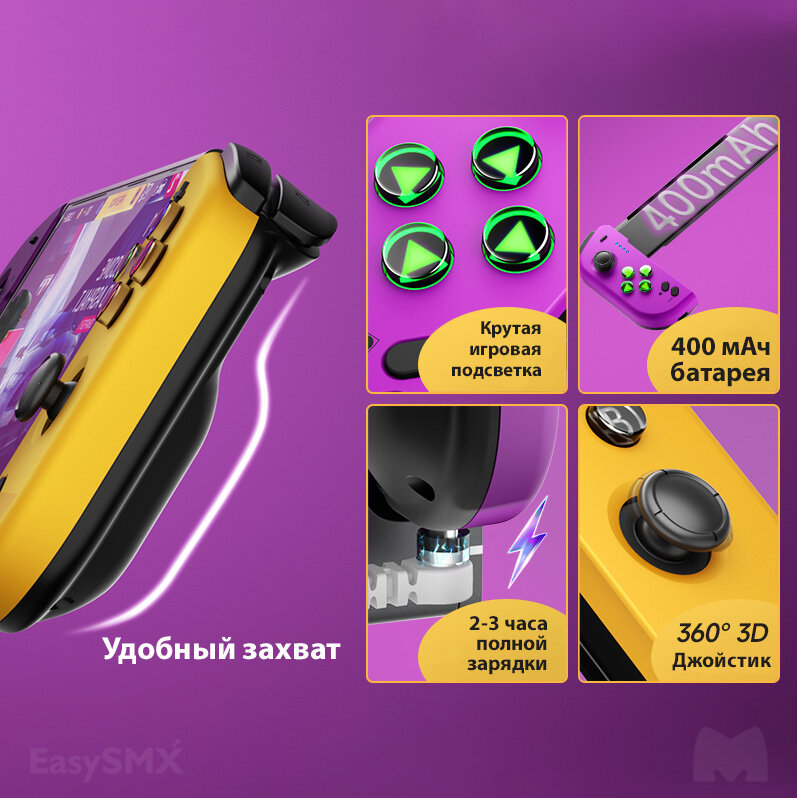6-осевой гироскоп обеспечивает чувствительное управление, что позволяет добиться более точной работы в игре. Подсветка кнопок обеспечивает визуальную индикацию, облегчая поиск кнопок даже в условиях низкой освещенности. Универсальная конструкция портативного устройства и подставки позволяет вам поворачивать экран или переходить в режим игры с рабочего стола.