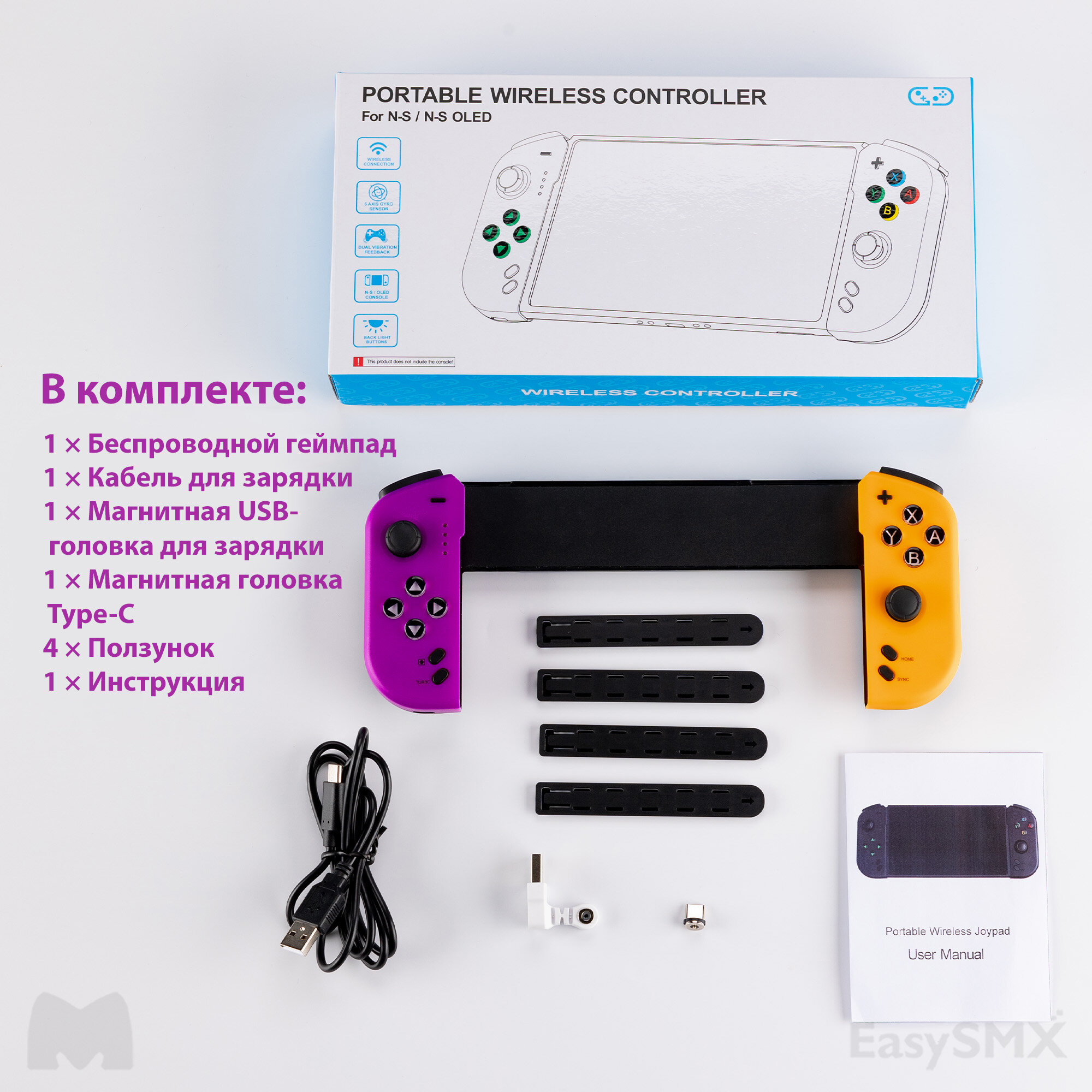Беспроводной геймпад; Провод зарядки USB-A/USB-C; Магнитная зарядная головка USB-A; Магнитная головка USB-C; Слайдеры для Nintendo Switch – 4шт.; Инструкция