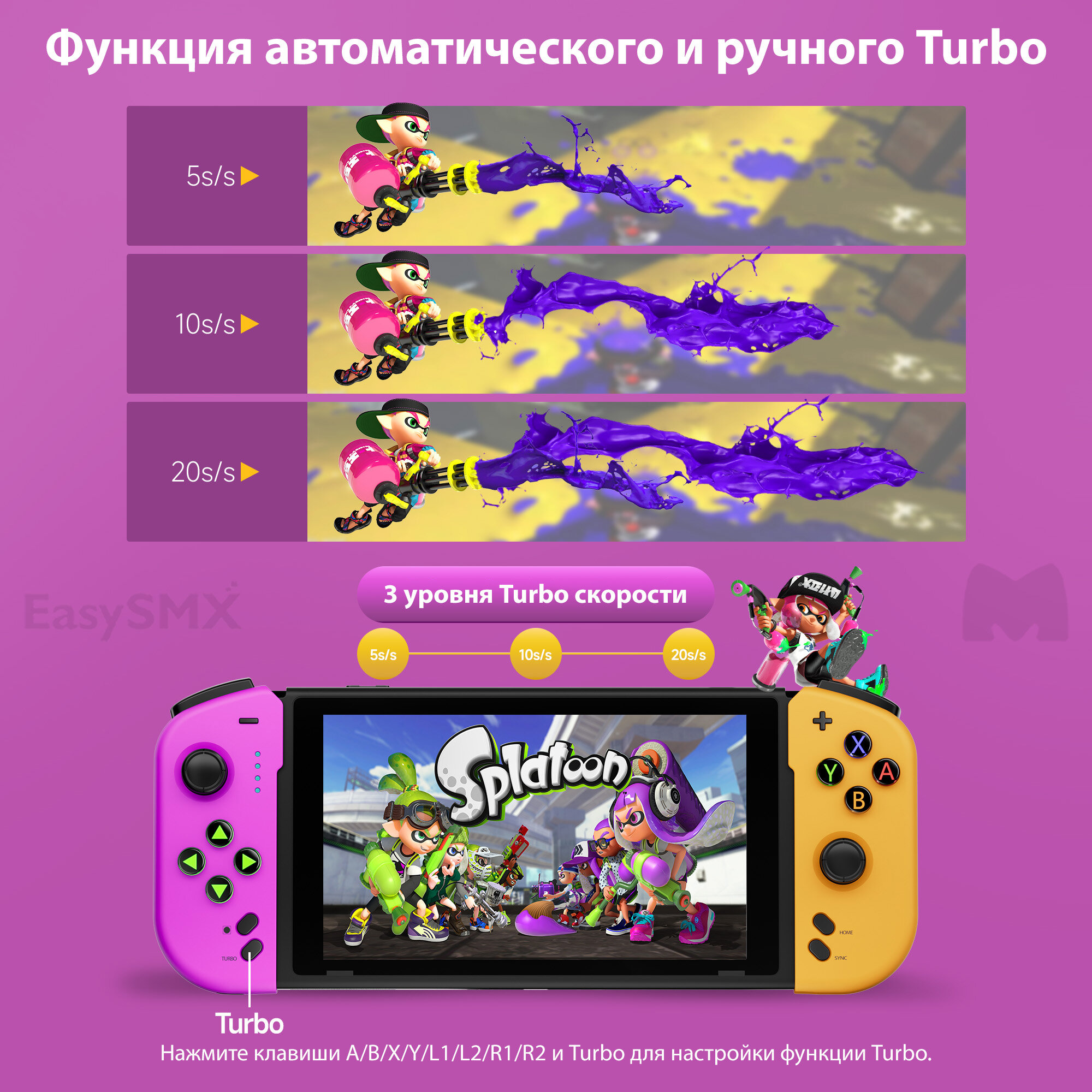 Геймпад совместим с Switch и Switch OLED для удовлетворения потребностей различных устройств. Трехскоростная функция Turbo burst и четырехскоростная регулировка вибрации позволяют вам свободно настраиваться в соответствии с личными предпочтениями, обеспечивая более персонализированный игровой процесс.