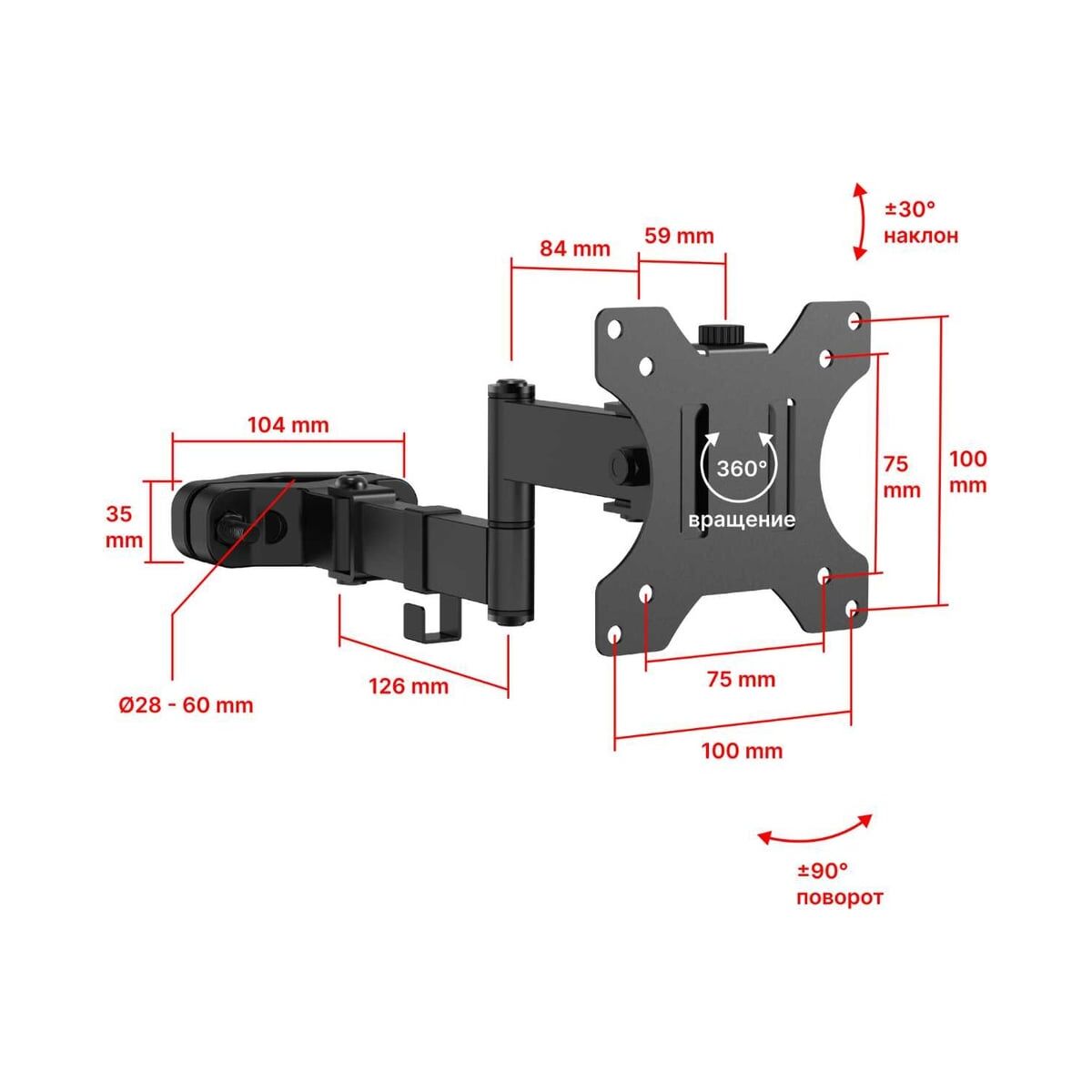 Тип кронштейна: На трубу, наклонно поворотный быстросъемный для телевизора или монитора