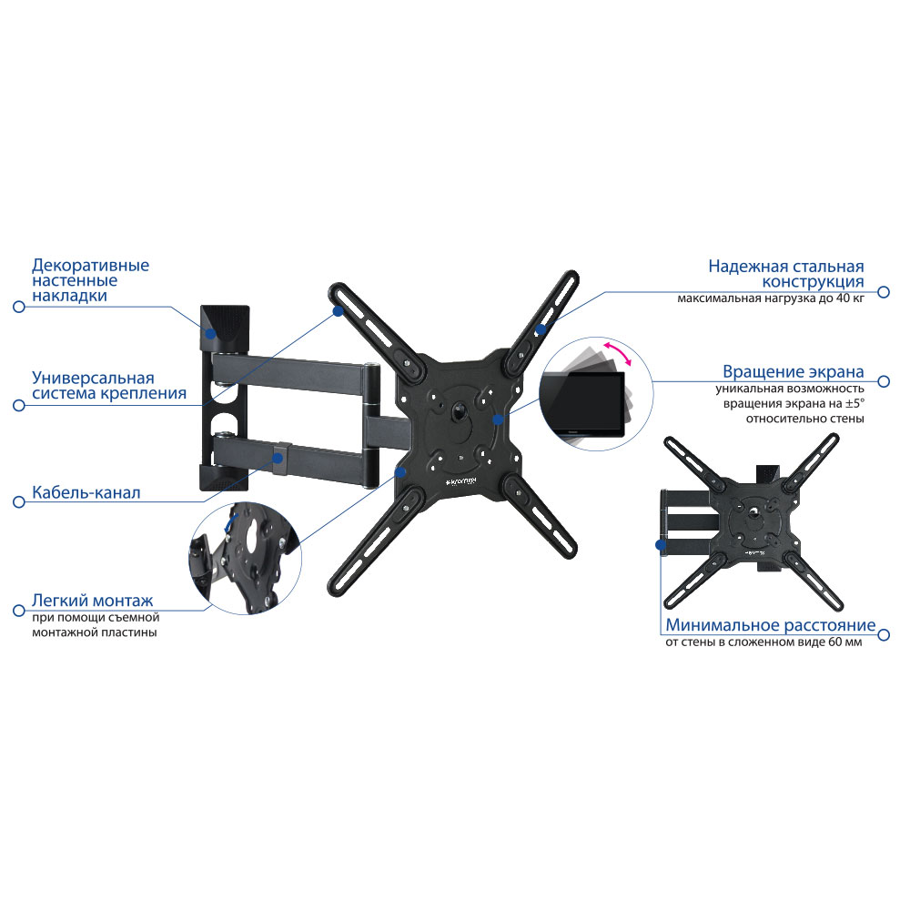 Максимальный вес телевизора: 40 кг