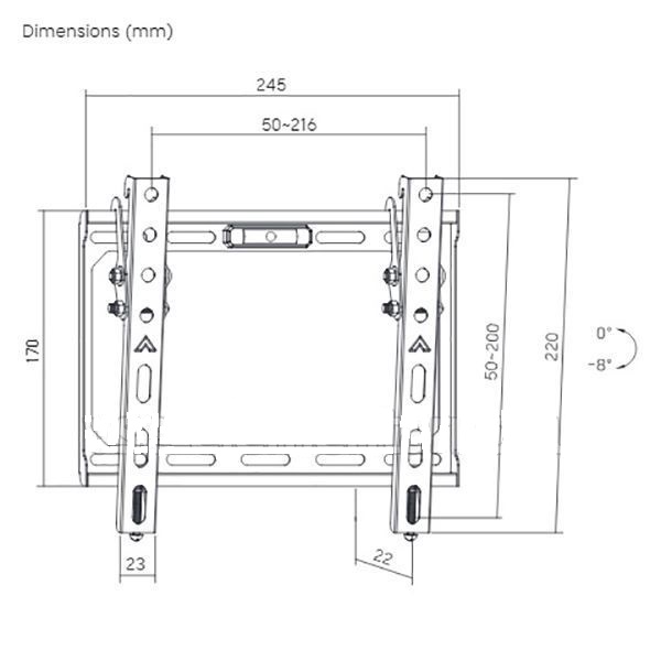 -8° (вниз) / +0° (вверх)