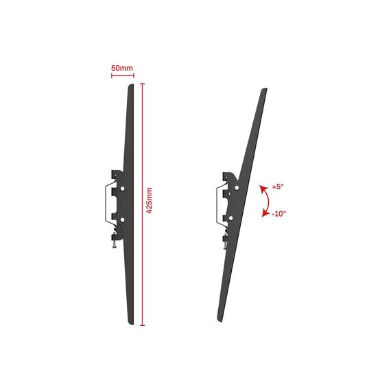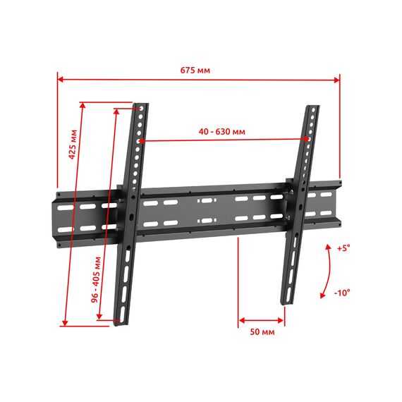 Увеличенная площадка крепления к стене обеспечит еще большую надежность вашего ТВ и подарит чувство безопасности вам и вашим близким. Вы можете занимать любое удобное положение при просмотре ТВ за счет широких возможностей регулировки угла наклона. Эти возможности позволят получать удовольствие от просмотра. Также вы сможете комфортно разместить телевизор и на большой высоте. Конструкция предусматривает крепление телевизора к настенной площадке кронштейна с помощью болтов. Они обеспечивают хорошие возможности фиксации без возможности быстрого демонтажа ТВ.