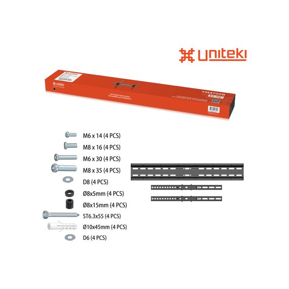 Настенный наклонный кронштейн UNITEKITM4702B в черном цвете предназначен для телевизоров с диагональю от 37 до 70 дюймов (93 - 177 см). Максимальный выдерживаемый вес составляет 35 кг, что делает кронштейн подходящим для больших и сверхбольших digital-панелей. Крепление универсально за счет множества предусмотренных производителем размеров VESA от 200x200 мм. до 600x400 мм. Изделие выполнено из холоднокатаной стали SPCC-класса, что обеспечивает его прочность и долговечность.