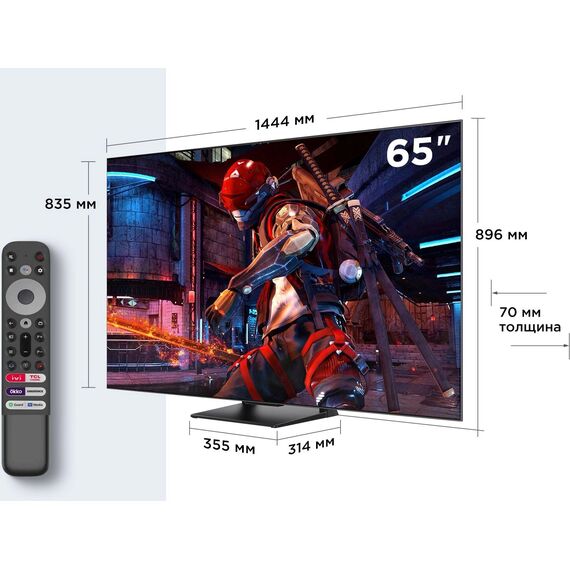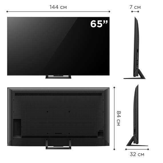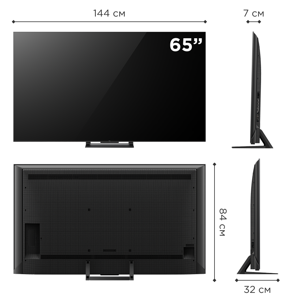 144Гц VRR. Голосовое управление. QLED. 1000 нит пиковая яркость. Google TV. Встроенный модуль Bluetooth: Да. Габаритные размеры (В*Ш*Г): 90*144*31 см. Серия: C745. Диагональ экрана: 165.1. Ultra HD: Да. Экран: 65"/3840x2160 Пикс. Частота обновления: 144. Технология HDMI ARC: Да. Операционная система: Google TV. Звук: 2.0. Тип батарей пульта ДУ: 2 х AAA. Смартфон в качестве пульта ДУ: Да. Поддержка Wi-Fi: Да. Поддержка Smart TV: Да. Запись с ТВ на USB устройство: Да. Sleep-таймер: Да. Функция TimeShift: Да. Цифровой тюнер DVB: T/T2/C/C2/S/S2. LAN разъем (RJ45): 1. Разъем для модуля DVB CAM: 1. Разъем для наушников 3.5 мм: 1. Настольная подставка: Да. Вес без подставки: 19.2. Ширина подставки: 35.5. Технология экрана: VA. Воспроизведение с USB: Да. Поддержка Apple HomeKit: Да. Габаритные размеры (без подставки): 84*144*7 см. Google Assistant: Да