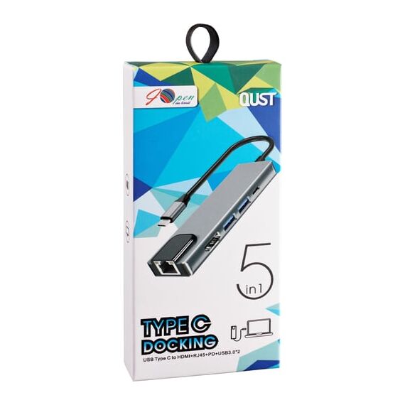 TYPE C переходник адаптер USB хаб / Концентратор "5 в 1" AOpen/QUST HDMI 4K 30Hz/ 2 x USB 3.0/ PD 3.0 ACU435M