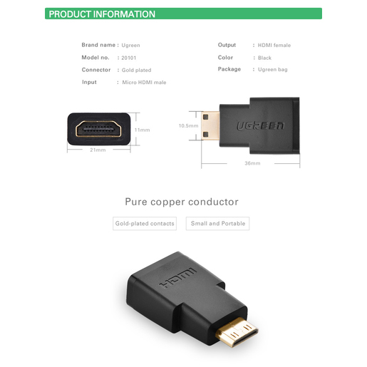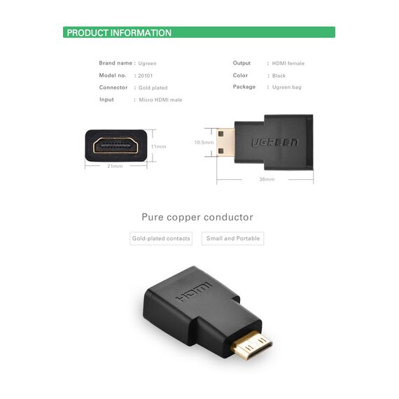 Адаптер UGREEN (20101) Mini HDMI Male to HDMI Female Adapter. Цвет: черный