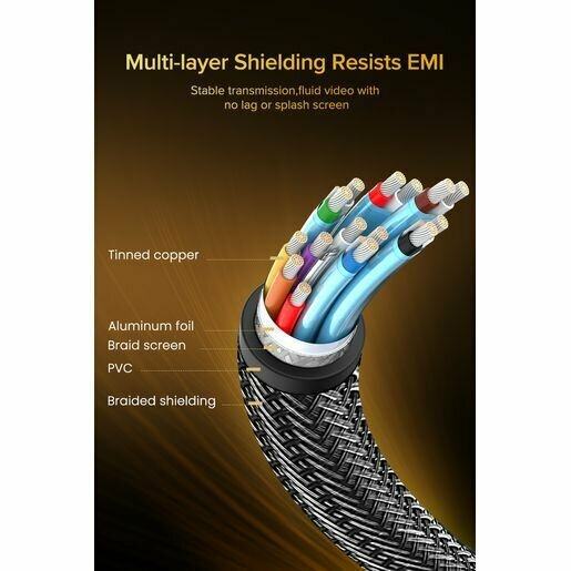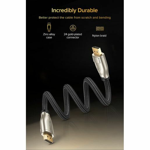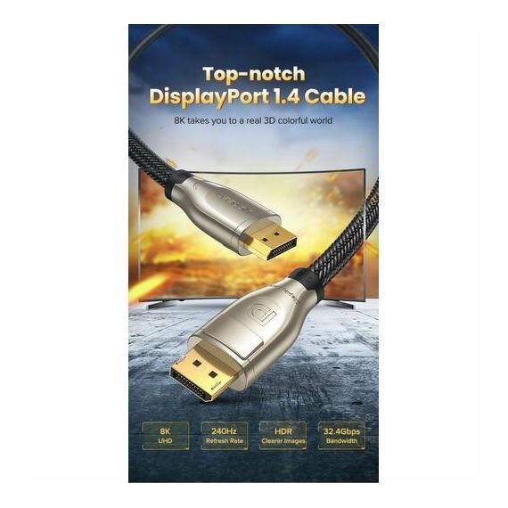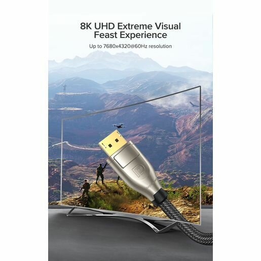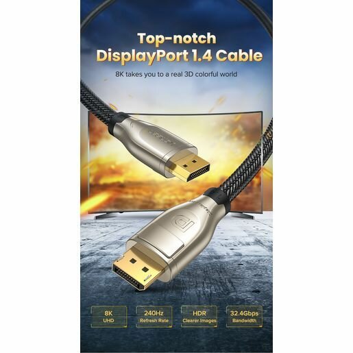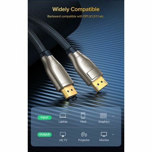 Кабель UGREEN DP112 60842 1.4 DP M/M Round Cable Zinc Alloy Shell with Braided 1m Black