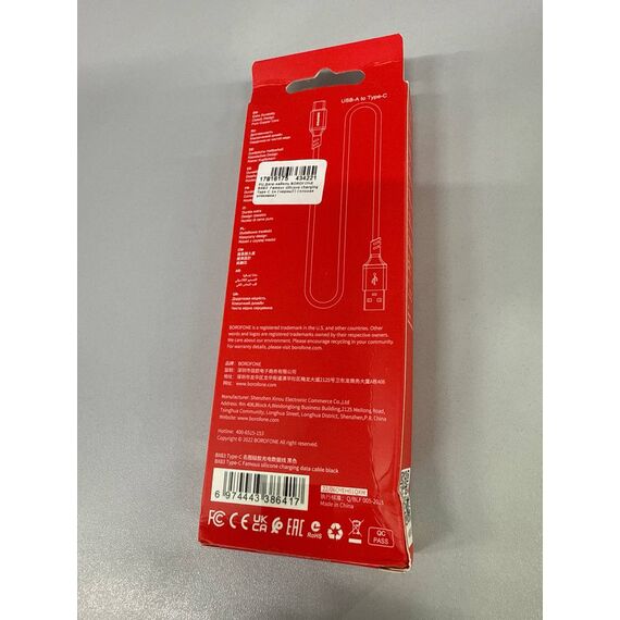 УЦ Дата-кабель BOROFONE BX83 Famous silicone charging Type-C 1м (черный) (плохая упаковка)