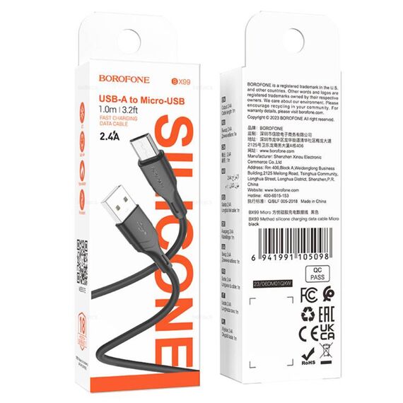 УЦ Дата-кабель BOROFONE BX99 Method Micro (черный) (плохая упаковка)