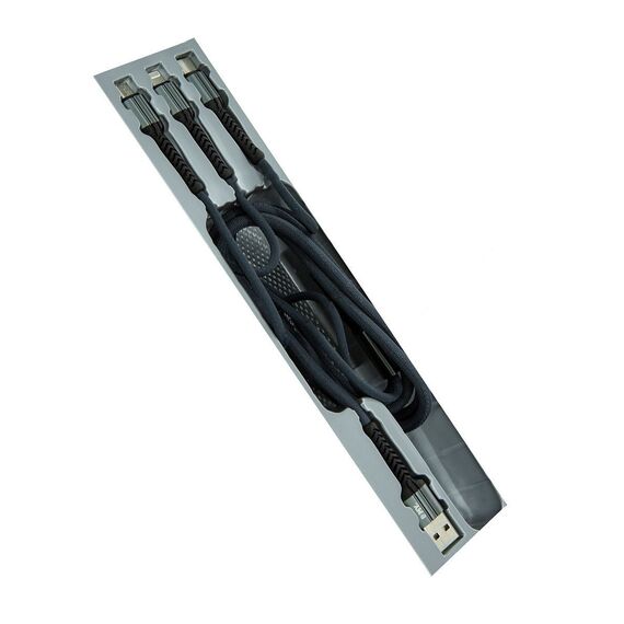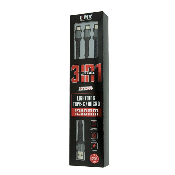 УЦ Дата-кабель EMY MY-453 3 в 1 (micro USB + iPhone Lightning) 1m, чёрно-серый (плохая упаковка)