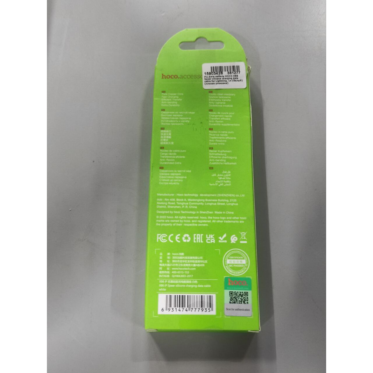 УЦ Дата-кабель HOCO X86 Spear silicone charging data cable for Lightning, 1м белый (плохая упаковка)