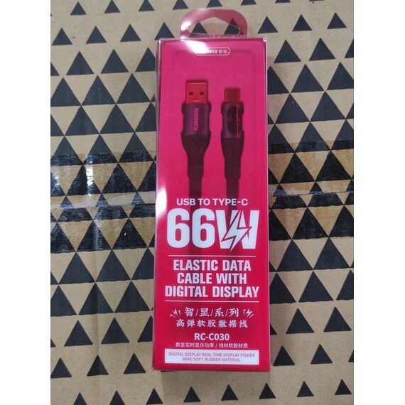 УЦ Дата-кабель REMAX RC-C030 Zisee Series 66W All-Compatible Elastic Data Cable with Digital Display Type-C синий (плохая упаковка)