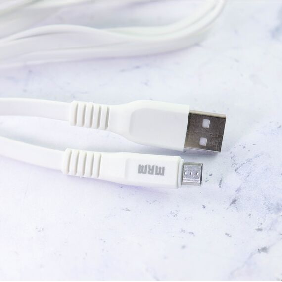 УЦ Дата-кабель RL55 резиновый плоский Micro 2.1A 3м (белый) (плохая упаковка)