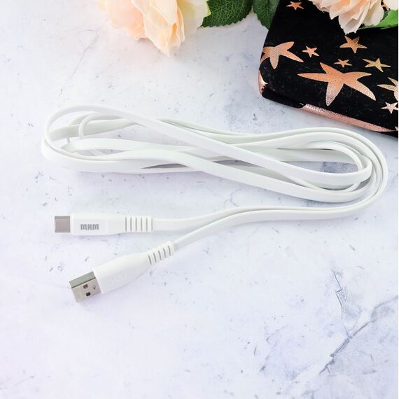 УЦ Дата-кабель RL55 резиновый плоский Type-C 2.4A 2м, (белый) (плохая упаковка)
