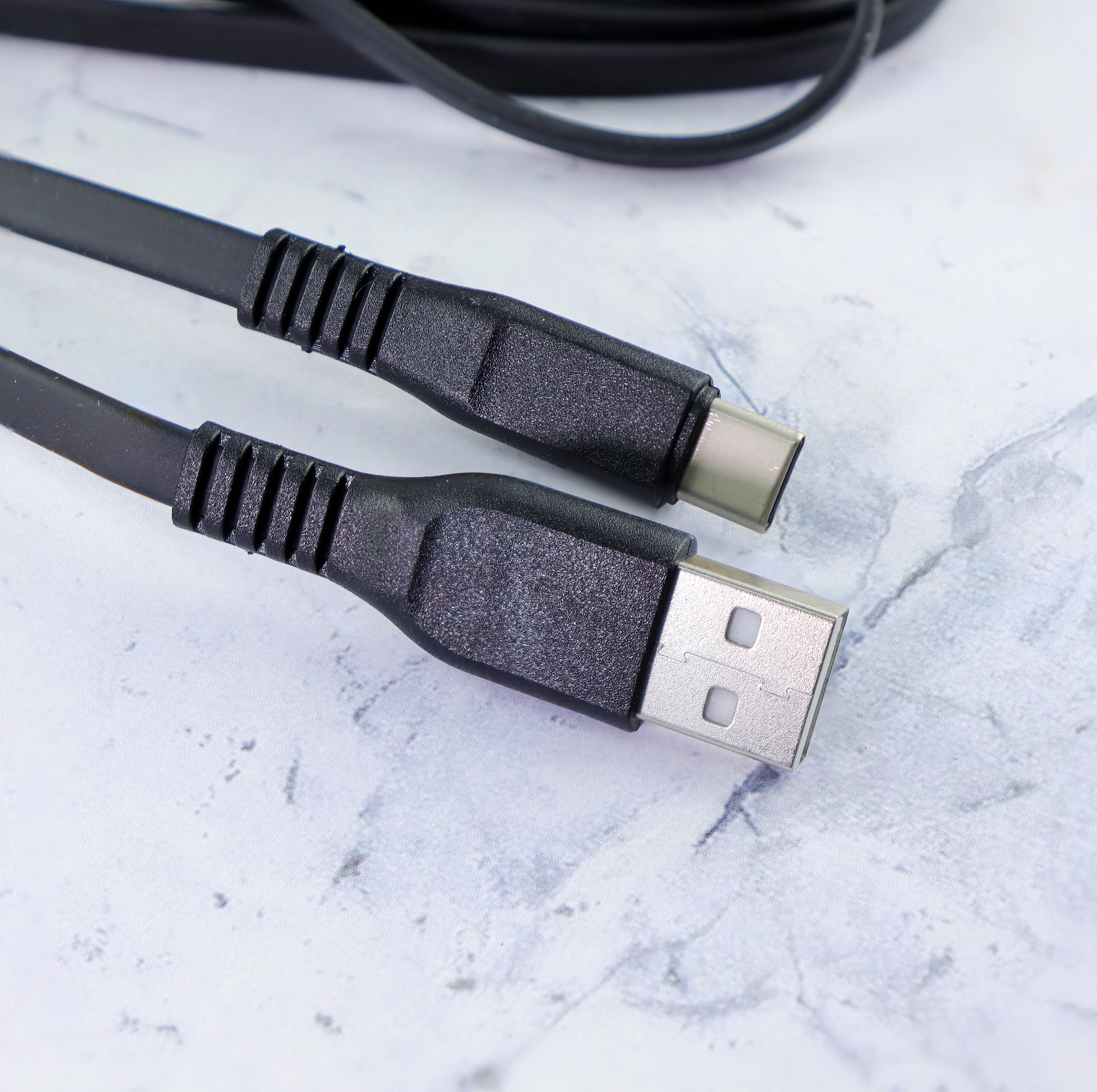 УЦ Дата-кабель RL55 резиновый плоский Type-C 2.4A 2м, (чёрный) (плохая упаковка)