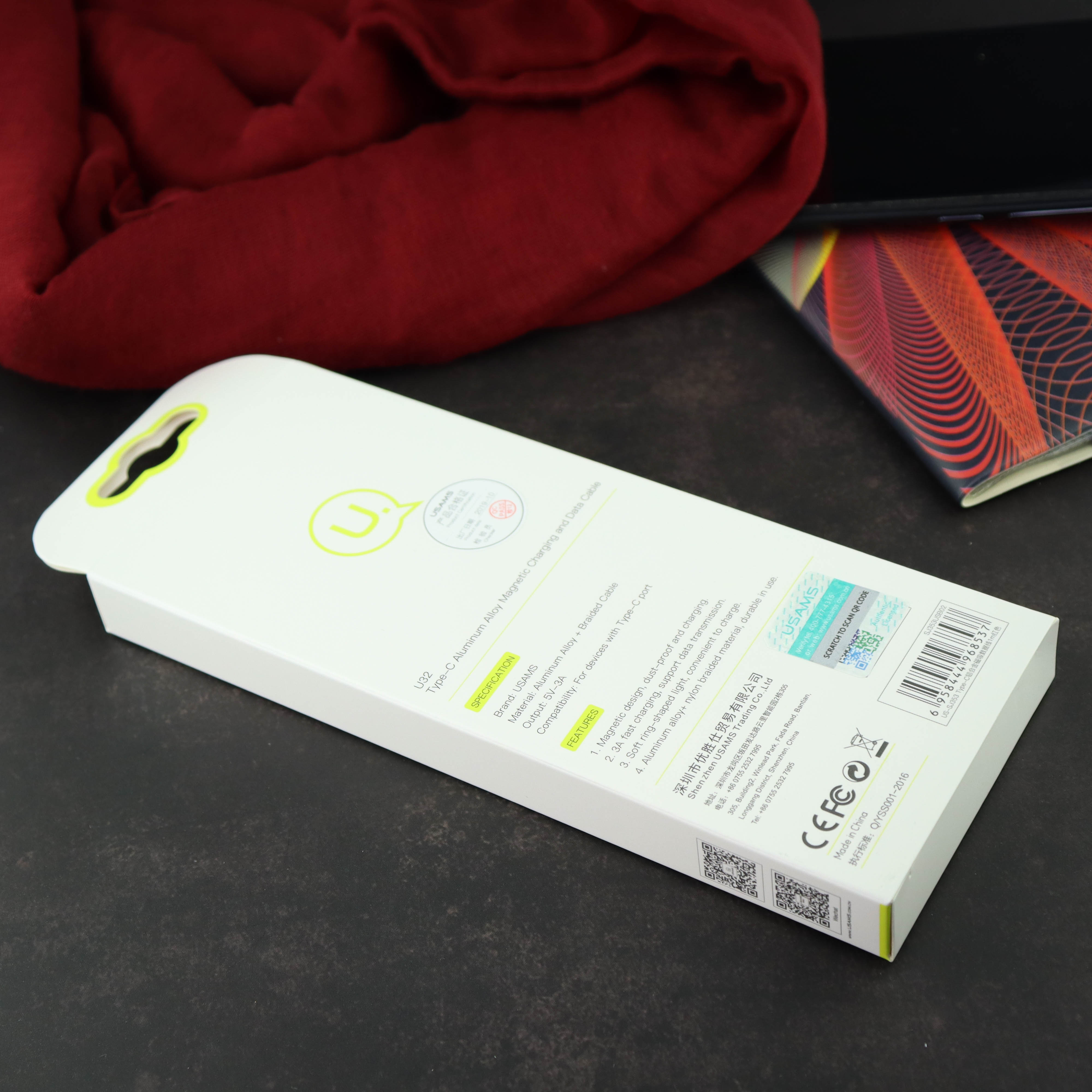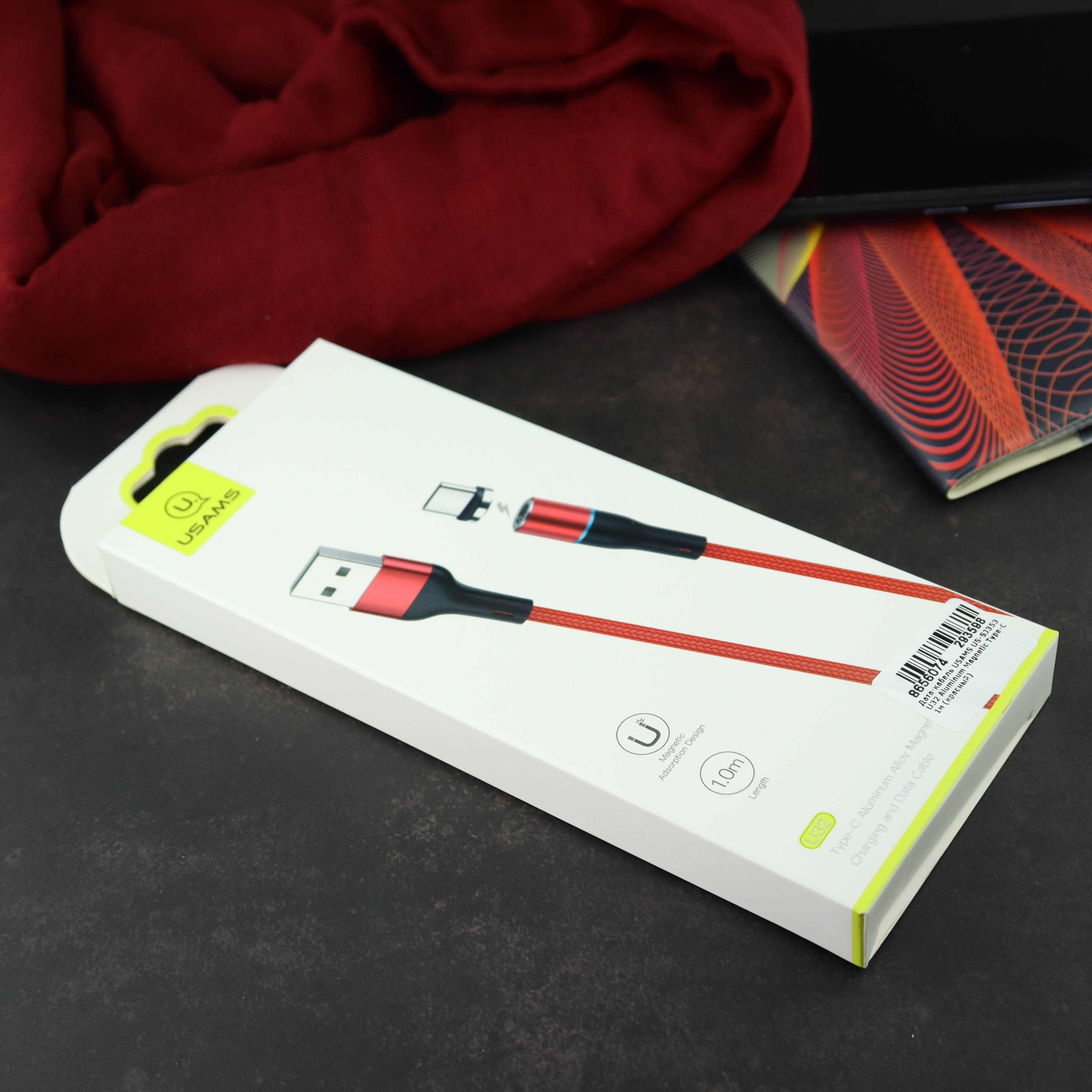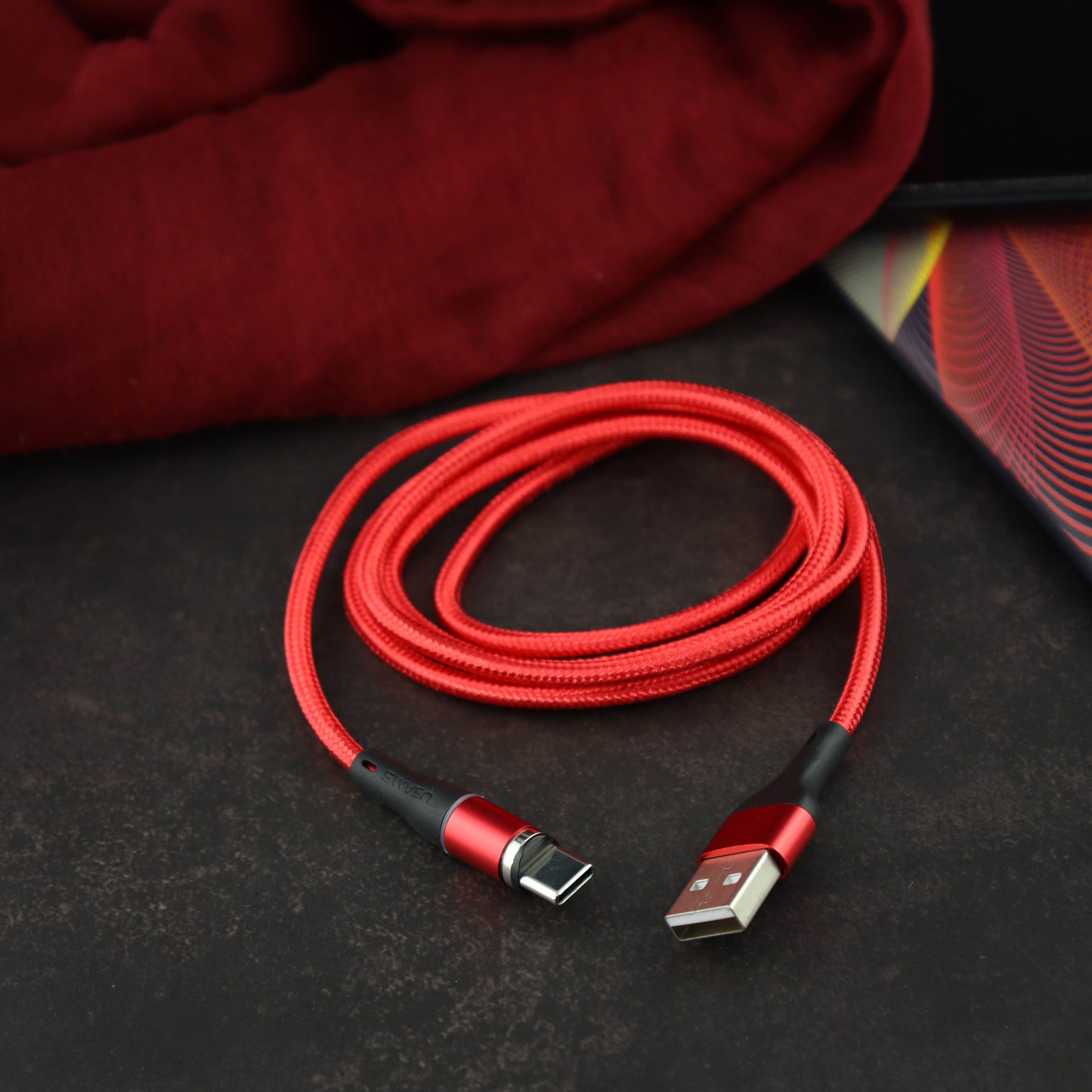 УЦ Дата-кабель USAMS US-SJ353 U32 Aluminum Magnetic Type-C 1м (красный) (ПУ)