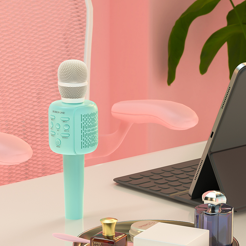 УЦ Караоке микрофон BOROFONE BF1 Rhyme BT V5.0, батарея 1200mAh, TF карта, USB флеш накопитель, голубой (плохая упаковка)