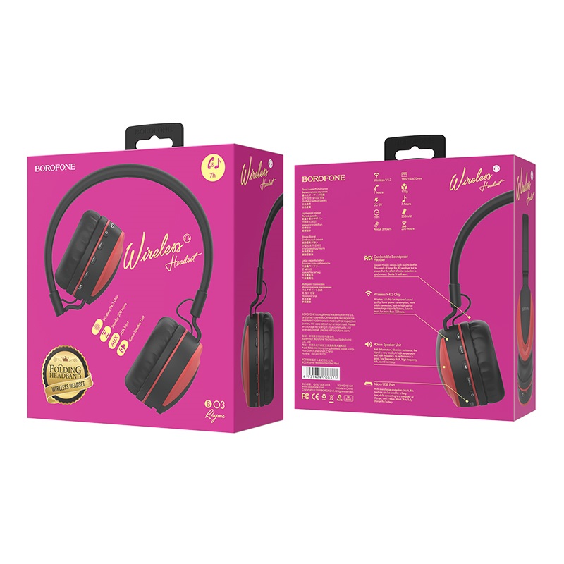 УЦ Наушники bluetooth полноразмерные Borofone BO3 Rhyme, red (ПУ)