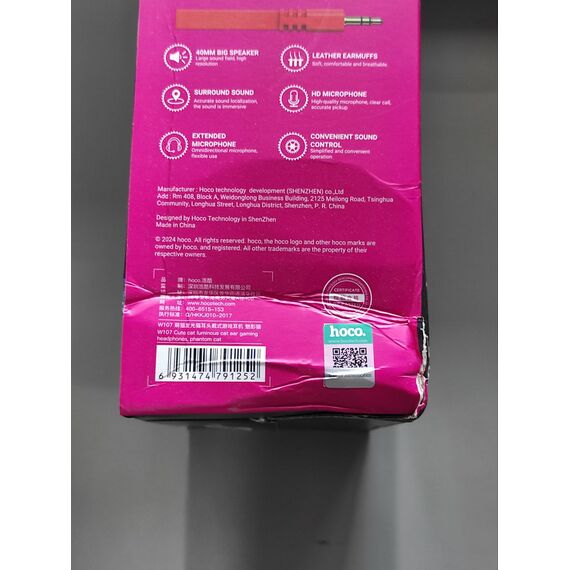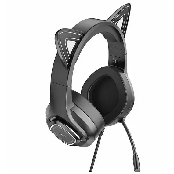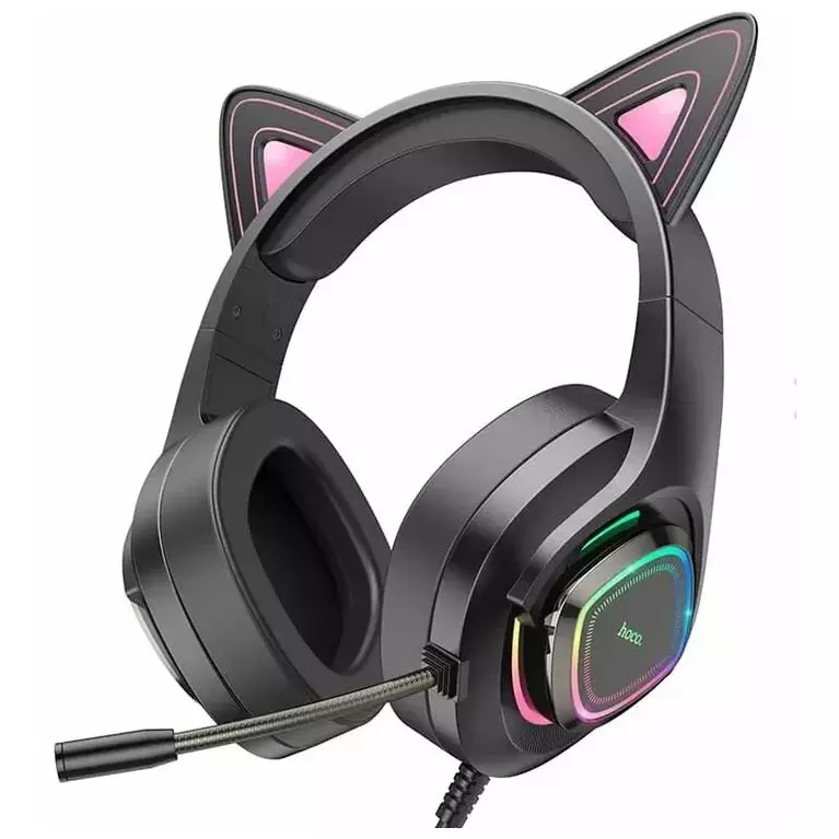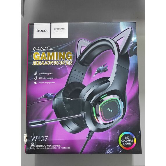 УЦ Наушники полноразмерные HOCO W107 Cute cat luminous cat ear, игровые (phantom cat) (плохая упаковка)