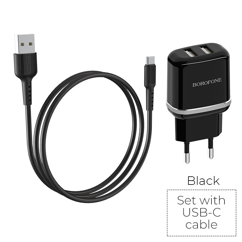 УЦ СЗУ Borofone BA25A 5V/3A 2USB Outstanding dual port + Type-C cable, black (ПУ)