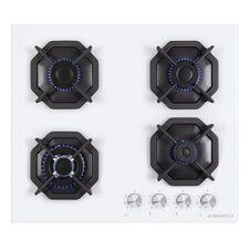 Тип газовая Тип подключения независимая Материал закаленное стекло Края панели обработанные без рамки Цвет белый Цвет фурнитуры серебристый Управление Регуляторы мощности поворотные Расположение панели управления спереди Тип управления механическое Конфорки Количество конфорок 4...