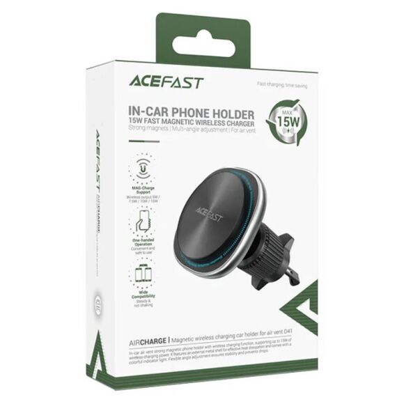 Автодержатель ACEFAST D41 Magnetic Wireless Charging Car Holder For Air Vent Silver