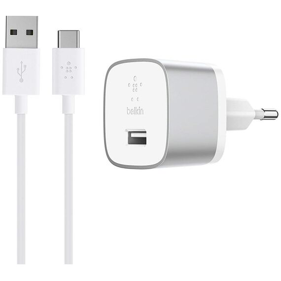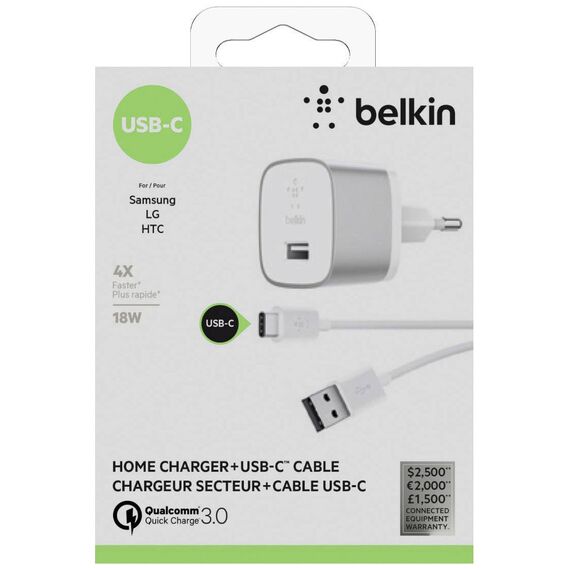 АЗУ Belkin QC 3.0 USB-A, 18W,Кабель USB-A USB-C, 1.2m,SILVER (F7U034vf04-SLV)