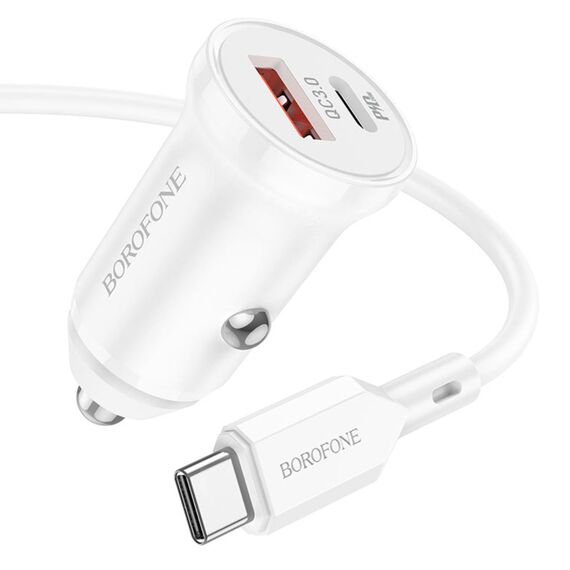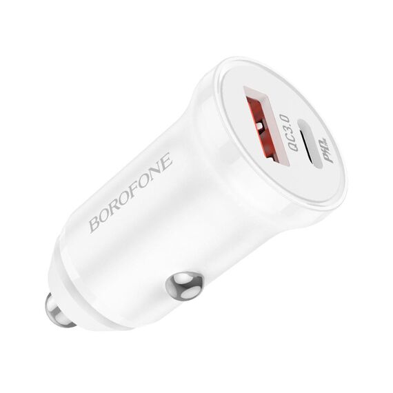 АЗУ BOROFONE BZ18A PD 2USB, Type-C+Type-А car charger (белый)