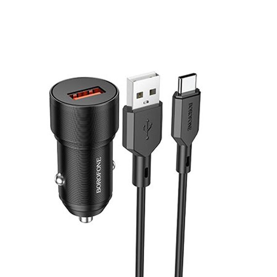 АЗУ BOROFONE BZ19A Wisdom single port QC3.0 car charger set Type-C черный