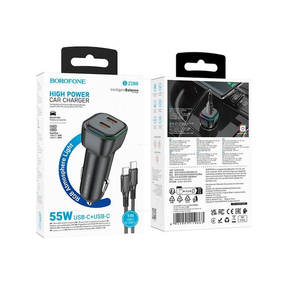 АЗУ BOROFONE BZ28B Trophie PD55W(2C) car charger set (C to C) черный