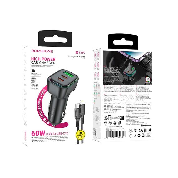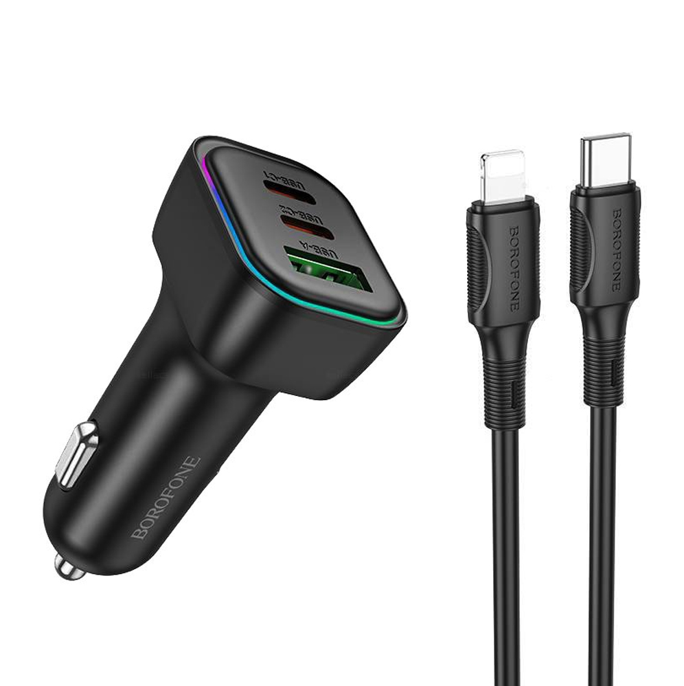 АЗУ BOROFONE BZ28C Trophie PD60W(2C1A) car charger set (C to iP) черный