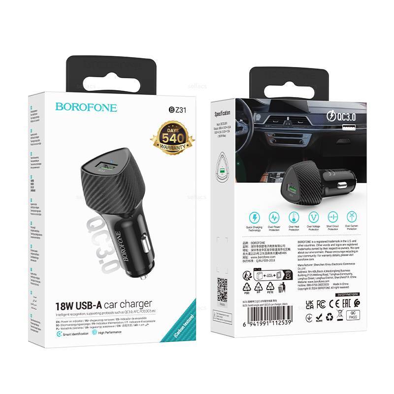 АЗУ BOROFONE BZ31 Solid single-port QC3.0 car charger черный