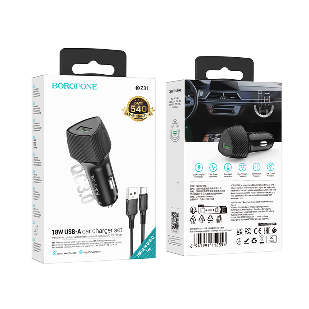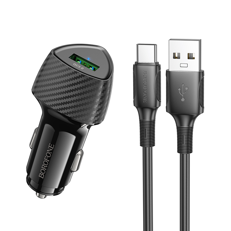 АЗУ BOROFONE BZ31 Solid single-port QC3.0 car charger set (Type-C) черный