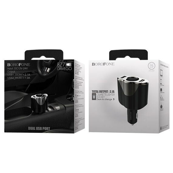 АЗУ Borofone BZ7 DriveGo dual port with cigarette lighter socket car charger, black
