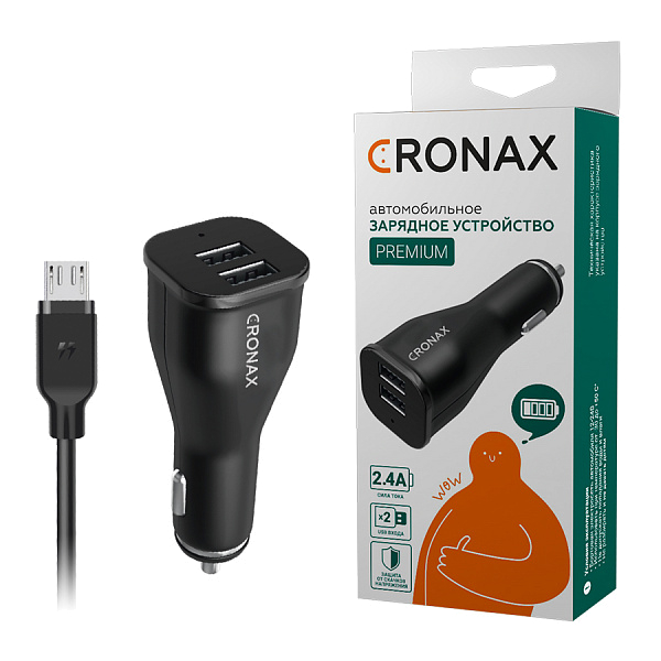 АЗУ CRONAX Premium CR-250m 2.4A/2 USB + кабель Micro чёрный