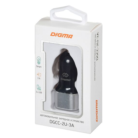АЗУ Digma DGCC-2U-3A-BS 2.1A+1A черный