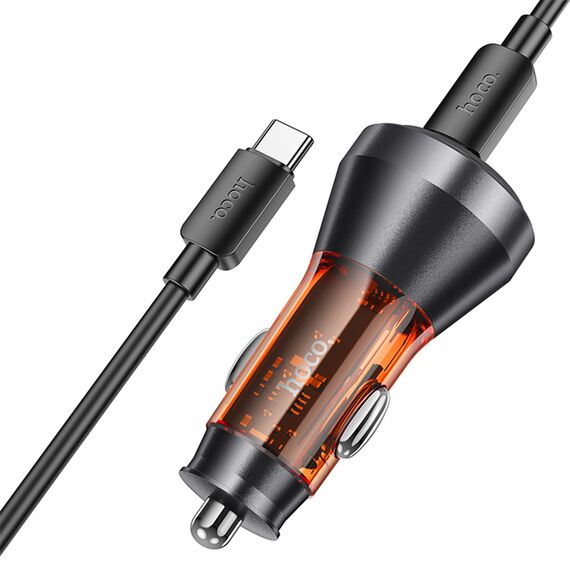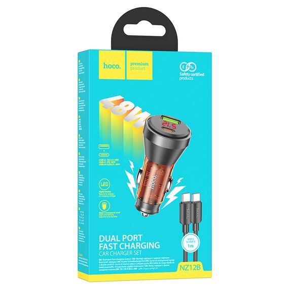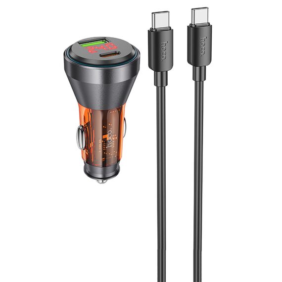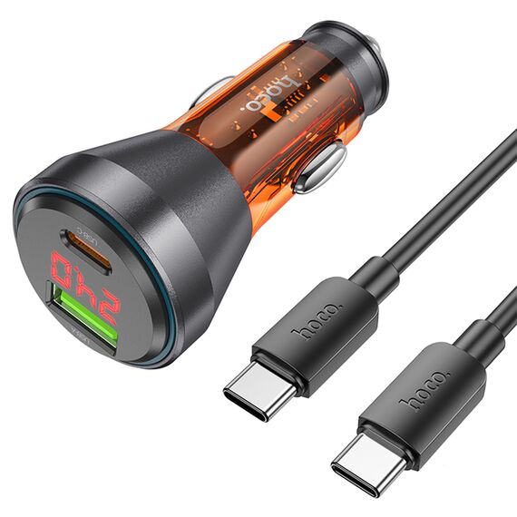 АЗУ HOCO NZ12B Unimpeded PD48W (1C1A) car charger with digital display set Type-C + Type-C transparent orange
