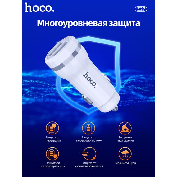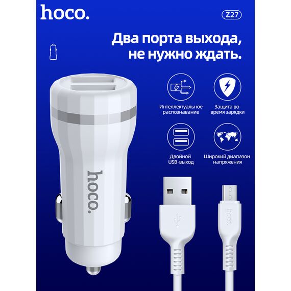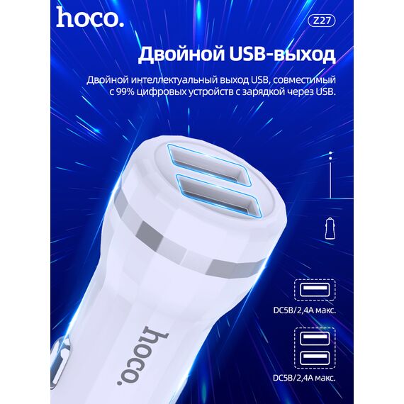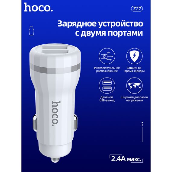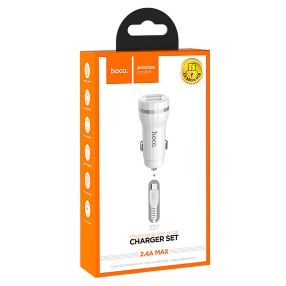 АЗУ HOCO Z27 Staunch dual port+micro 2.4A White